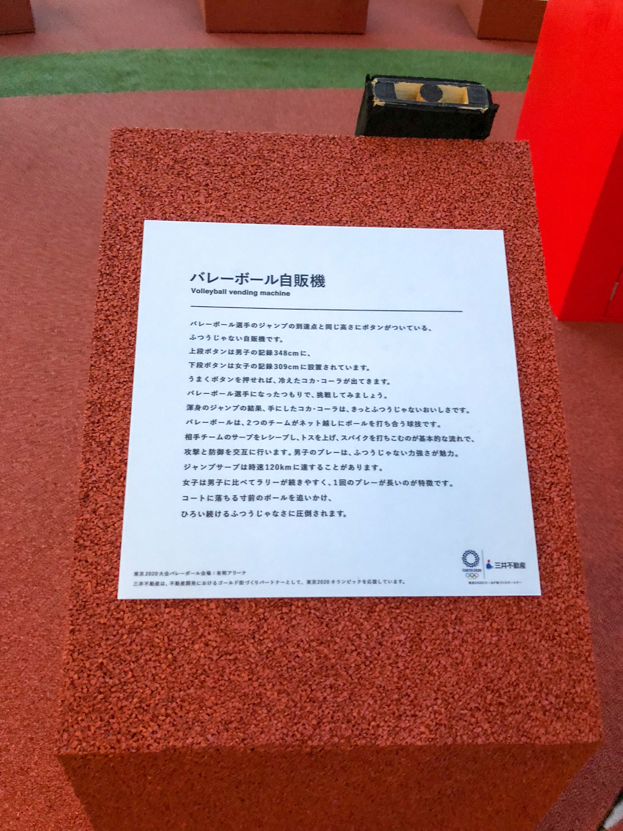 So close! This 3.5-metre high vending machine shows the height that Olympic volleyball players jump when they play. Hit a button and get a free Coke. On at Midtown Hibiya until 26 August.#Tokyo2020 #CocaCola #ふつうじゃない2020展 #Japan #2YearstoGo @CocaColaJapan pic.twitter.com/I4jsj7qhZP