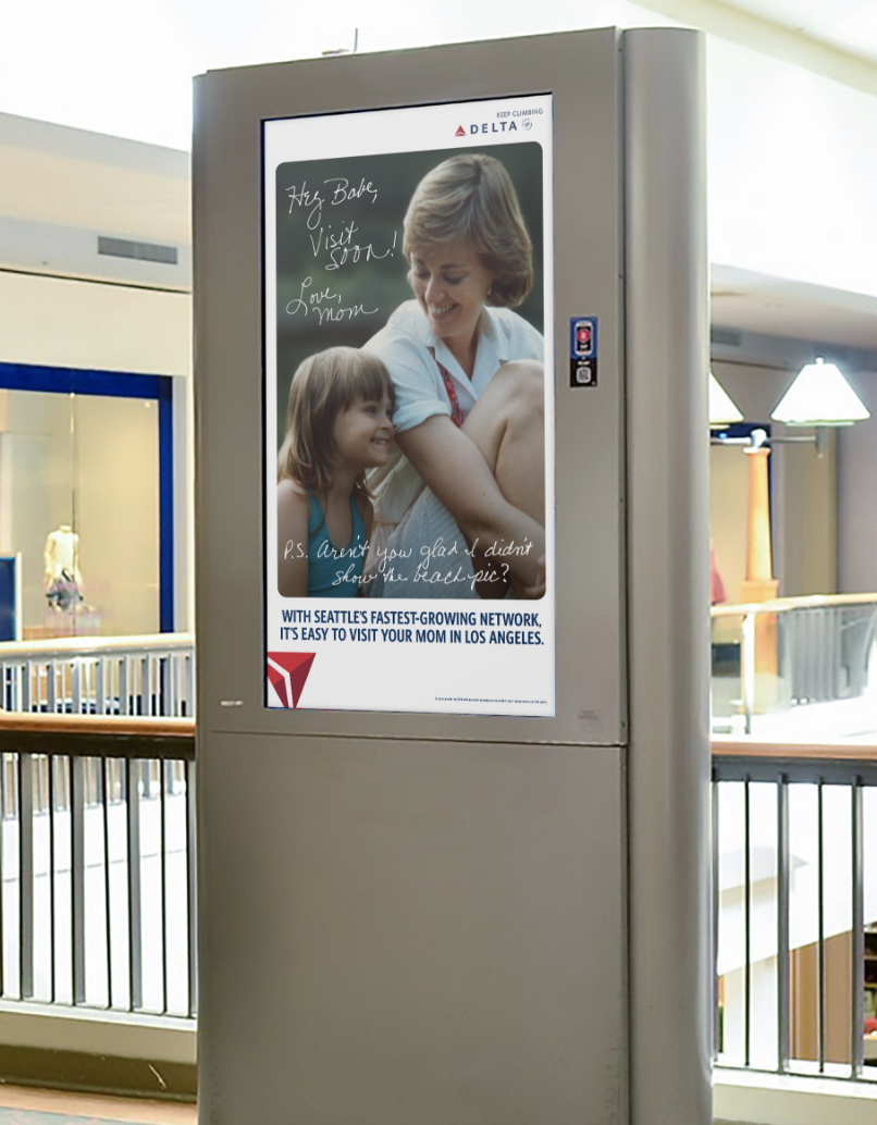 แคมเปญนี้ทั้งฉลาดและตลก โดยเข้าจับกลุ่มเป้าหมายที่มากกว่า 60 เปอร์เซ็นต์ ซึ่งเป็นผู้ที่อยู่อาศัยในซีแอตเติลเป็นคนต่างเมือง และเป็นแคมเปญที่เน้นการให้ความสำคัญกับแม่ซึ่งเป็นจุดเด่นที่อยู่นอกฤดูกาลแม่(ของฝรั่ง)แบบดั้งเดิม นอกจากนี้ยังเน้นการผลักดันอย่างต่อเนื่องของ Delta ในการพาตัวเองสู่ตลาดที่ Alaska Airlines ถือครองส่วนแบ่งทางการตลาดมากที่สุดมาเป็นเวลานาน