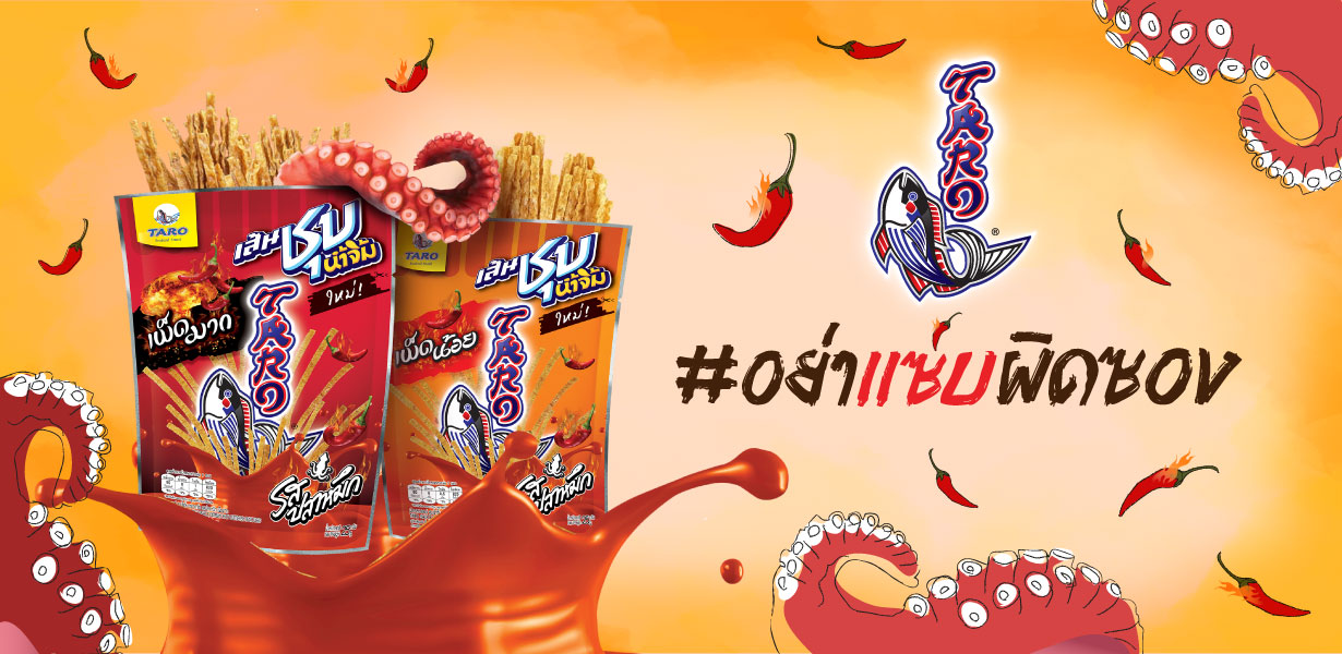 แต่การกลับมาเผ็ด! ครั้งนี้ของทาโร ไม่ใช่เผ็ดแบบเด็กๆ แต่เผ็ดดุ! เพื่อตอบโจทย์ตลาดให้แซ่บซี้ดสุดๆทั้งบางกับ “ทาโร เส้นชุบน้ำจิ้ม” รสปลาหมึก