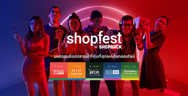 สำหรับข้อมูลเพิ่มเติม คลิก shopfest.co.th และสามารถดาวน์โหลดแอพพลิเคชั่น ShopBack บนอุปกรณ์เคลื่อนที่ของคุณ
