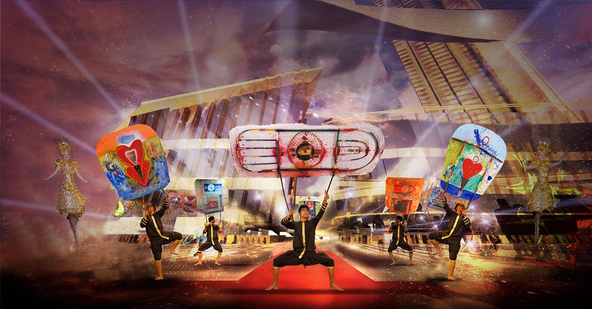 1. เริ่มจากไฮไลท์บริเวณ River Park ริมฝั่งแม่น้ำเจ้าพระยา กับการแสดงชุด “Eternal Prosperity – โรจนนิรันดร” ที่ผสมผสานศิลปวัฒนธรรมเข้ากับความล้ำยุค สะท้อนความรุ่งเรืองในอดีตที่สืบสานและส่งต่อจนถึงปัจจุบัน ความก้าวล้ำ และความเจิดจรัสของอนาคต โดยการเนรมิตพื้นที่ริมเจ้าพระยาให้กลายเป็นเวทีการแสดงขนาดใหญ่ ตกแต่งด้วยประติมากรรม ผลงานการออกแบบโดยอาจารย์เฉลิมชัย โฆษิตพิพัฒน์ ผสมผสานนาฏศิลป์ไทยประเพณี นาฏศิลป์ไทยร่วมสมัย นาฏศิลป์สากล และการแสดงกายกรรมผาดโผน