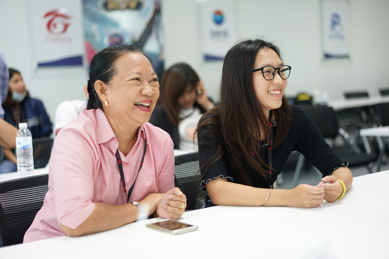 ด้วยความร่วมมือจาก Young Happy ทำให้มีพี่ๆวัยเก๋ามากถึง 33 คนมาร่วมสนุก งานนี้อบอวลไปด้วยเสียงฮาจากสเต็ปลีลาการเล่นเกม ROV ของวัยเก๋าแต่ละคน ที่ประกบสอนโดยทีมน้องๆ จากการีนาและลูกๆ หลานๆ จากแต่ละครอบครัว ที่สวมบทบาทเป็นเมนเทอร์สุดเป๊ะ ติวเข้มในช่วงเช้า ท่ามกลางเสียงคอมเมนต์น่ารักๆในห้องกิจกรรมอย่าง ‘แม่ๆ เติมเลือดก่อน’ ‘พี่คะ อย่าลืมตีป้อมนะคะ’ หรือ ‘ทางขวาสิครับ แม่วิ่งหลุดสนามแล้ว’