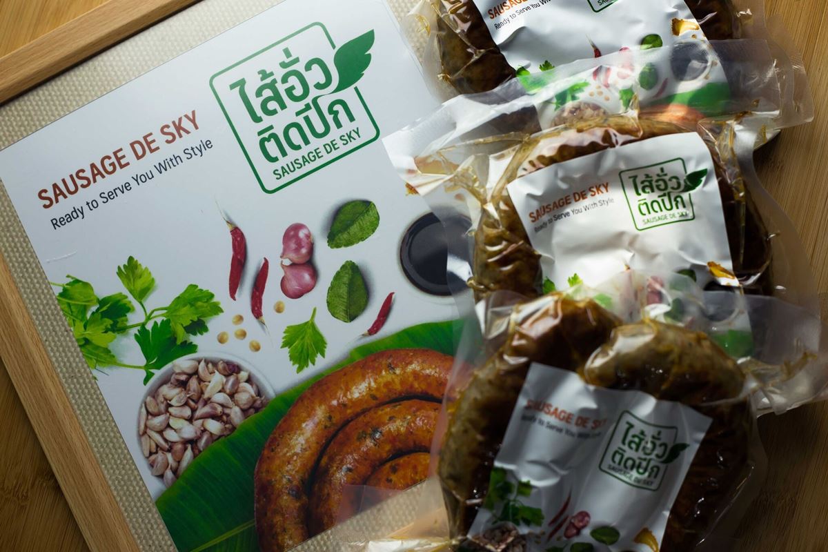 “ไส้อั่วติดปีก Sausage de Sky” ผลิตภัณฑ์ไส้อั่วย่างสูตรพิเศษ ระดับ Hi-end เตรียมขยายฐานธุรกิจเปิดรับแฟรนไชส์ในระดับสากล ภายใต้สโลแกน “Ready to Serve You With Style” นำเสนอรูปแบบใส้อั่วไทยสมัยใหม่ รับประทานง่ายตอบโจทย์ไลฟ์สไตล์คนรุ่นใหม่ ผลิตจากหมูคัดพิเศษ เกรด Premium ไขมันน้อย ทานแล้วไม่ต้องกลัวอ้วน ไม่ผสมแป้ง ไม่ใส่น้ำตาล ไม่มีผงชูรส ไม่ใส่วัตถุกันเสีย หอมกรุ่นด้วยสมุนไพรไทย อาทิ ขมิ้น, กระเทียม ,ใบมะกรูด และพริก เป็นต้น