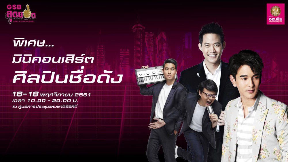 งาน “GSB Smart SMEs Smart Startup 2018” ระหว่างวันที่ 16-18 พฤศจิกายน 2561 ณ ห้องเพลนารี่ฮอลล์ 1-3 ศูนย์การประชุมแห่งชาติสิริกิติ์ งานเดียวที่รวบรวมไอเดียการทำธุรกิจ SMEs และ Startup แห่งโลกดิจิทัลจะช่วยต่อยอดและสร้างโอกาสและแต้มต่อให้กับผู้ประกอบการไทยได้เป็นอย่างดี