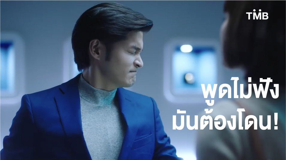 WATCH เล่าเรื่องโดย ครอบครัวหนึ่งไปซื้อนาฬิกาอยู่ที่ร้านแห่งหนึ่งในยุโรป พ่อก็หยิบบัตรขึ้นมาหวังจะรูดซื้อทันที แต่แม่ยังไว หยิบค้อนขึ้นมาตีมือพ่อเอาไว้ทัน เพราะคิดว่าจะโดนชาร์จ 2.5% แต่พ่อบอกแม่ว่า ไม่ชาร์จ เพราะนี่คือ บัตรเดบิต ทีเอ็มบี ออลล์ ฟรี รูดได้ ไม่ชาร์จ 2.5% เรทถูกสุดๆ เทียบเท่าร้านแลกเงิน