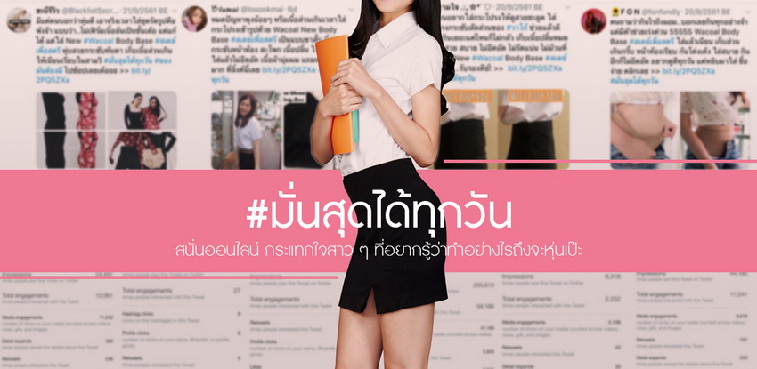 กลายเป็นแฮชแท็กสุดร้อนแรงในชั่วข้ามคืน เมื่อบรรดาสาวๆ ไอดอลในโลกทวิตเตอร์ต่างพร้อมใจกันออกมาแชร์ปัญหาเรื่องหุ่นและรูปร่างที่เป็นอุปสรรคในการเลือกใส่เสื้อผ้า ทำให้พวกเธอขาดความมั่นใจในการใช้ชีวิตประจำวัน จึงต้องเรียกคืนพลังผ่านแฮชแท็ก #มั่นสุดได้ทุกวัน ทำเอาเหล่า Followers พยักหน้าเห็นด้วย พร้อมแชร์ไอเดียและตัวช่วยที่จะทำให้พวกเธอหุ่นเป๊ะมั่นสุดได้ทุกวัน จนแฮชแท็กนี้พุ่งทะยานไปจนติดอันดับ 1 ของ Trend Twitter เมื่อเดือนกันยายนที่ผ่านมา