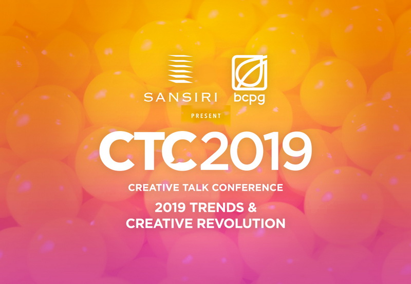 Sansiri and BCPG Present Creative Talk Conference 2019 (CTC2019) วันที่ 13 มกราคม 2019 (วันอาทิตย์) เวลา 09.00 – 18.00 น. ณ ศูนย์การประชุมแห่งชาติสิริกิติ์