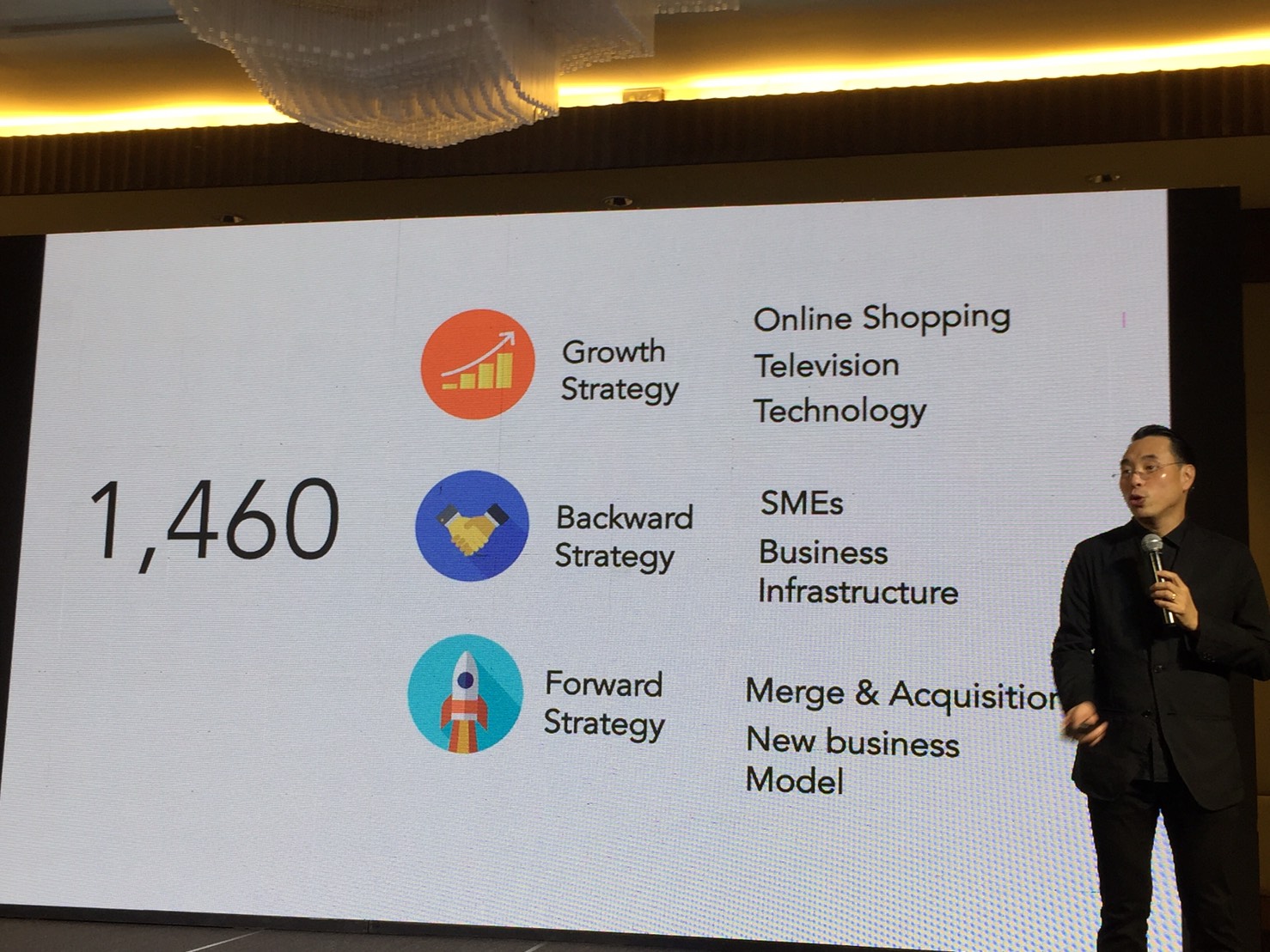 “นับจากวันนี้ไป 3 ปี บริษัทวางแผนใช้งบลงทุน 1,460 ล้านบาท โดยจะเน้นลงทุนในด้านเทคโนโลยี พัฒนาระบบ Home Shopping ในทีวี รวมไปถึงการร่วมลงทุนระบบกับพันธมิตร เพื่อที่จะรักษาฐานฝั่งออฟไลน์ที่มีอยู่ 80% เอาไว้ แต่จะเน้นเพิ่มฝั่งออนไลน์ให้เติบโตมากขึ้นเป็น 50% ภายใน 3-5 ปี”