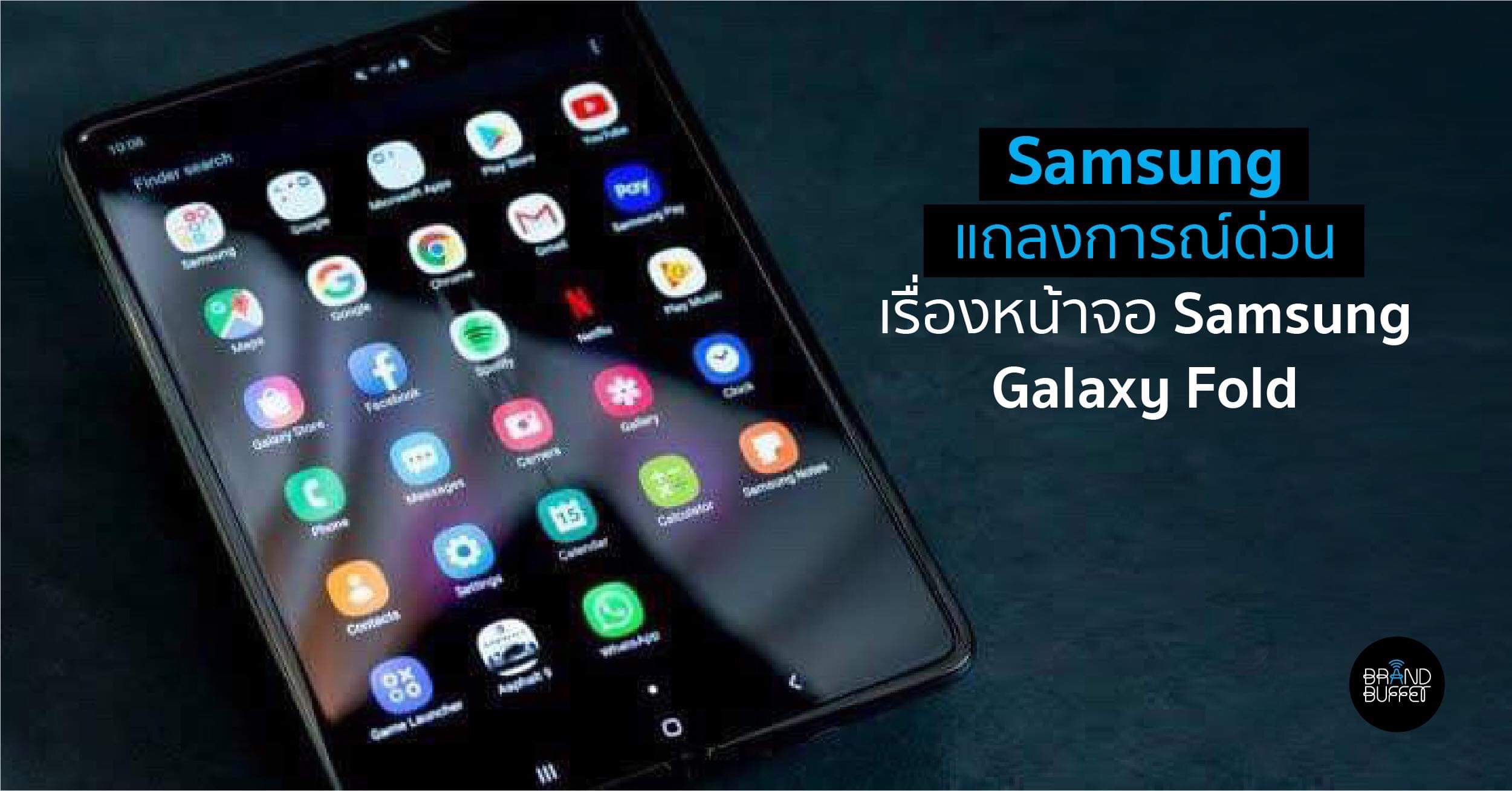 จากกรณีที่ สื่อและบล็อกเกอร์บางส่วนในต่างประเทศ ได้รับโทรศัพท์มือถือ Samsung Galaxy Fold ไปรีวิว แต่ปรากฏว่า โทรศัพท์เกิดมีปัญหาที่จอ ทั้งจอแตก และจอแสดงผลมีปัญหา ตามที่เป็นข่าวนั้น (อ่านต่อที่นี่) ทางซัมซุงได้ออกแถลงการณ์ในเรื่องนี้ ว่า