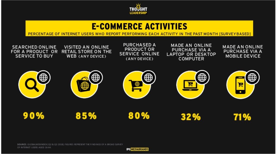 แม้ว่าแบรนด์ใหญ่หลายๆแบรนด์จะเริ่มใช้ดิจิทัล 100% กันแล้วก็ตาม ซึ่งจากข้อมูลพฤติกรรมการเข้าถึงอินเตอร์เน็ตของคนไทย ระบุว่า ปัจจุบันมีคนไทย 57 ล้านคนที่เข้าถึงอินเตอร์เน็ตได้แล้ว หรือคิดเป็นประมาณ 82% จากจำนวนประชากรทั้งหมดที่มีอยู่ราวๆ 69 ล้านคน ซึ่งในจำนวนดังกล่าว เป็นการเข้าถึงผ่านทางโมบายล์ถึง 79% และยังมีแนวโน้มที่จะเติบโตเพิ่มขึ้นเรื่อยๆ