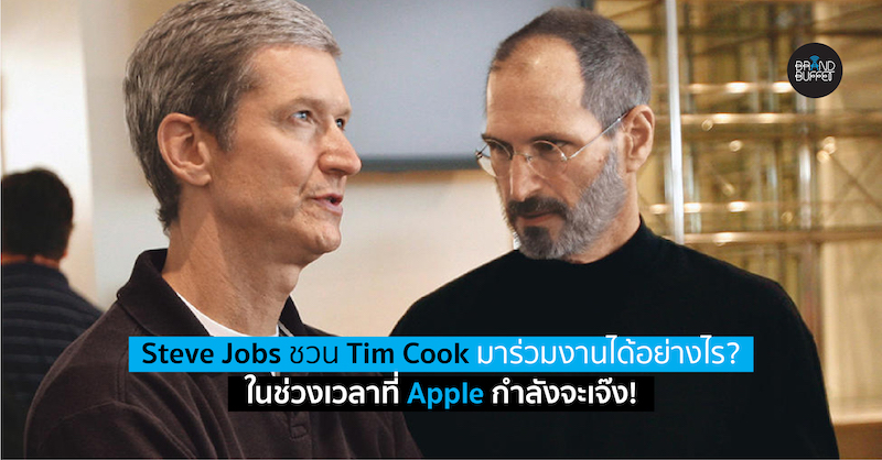 หลังจากได้รับการทาบทามหลายครั้ง Cook ตัดสินใจว่า อย่างน้อยที่สุดสิ่งที่เขาควรทำก็คือ การพบกันตัวต่อตัวกับ Steve Jobs โดย Cook ให้สัมภาษณ์กับ Charlie Rose ในปี 2014 ว่า “Steve สร้างอุตสาหกรรมที่ผมอยู่ทั้งหมด และ เขาทำบางอย่างตรงข้ามกับผมทั้งหมด”