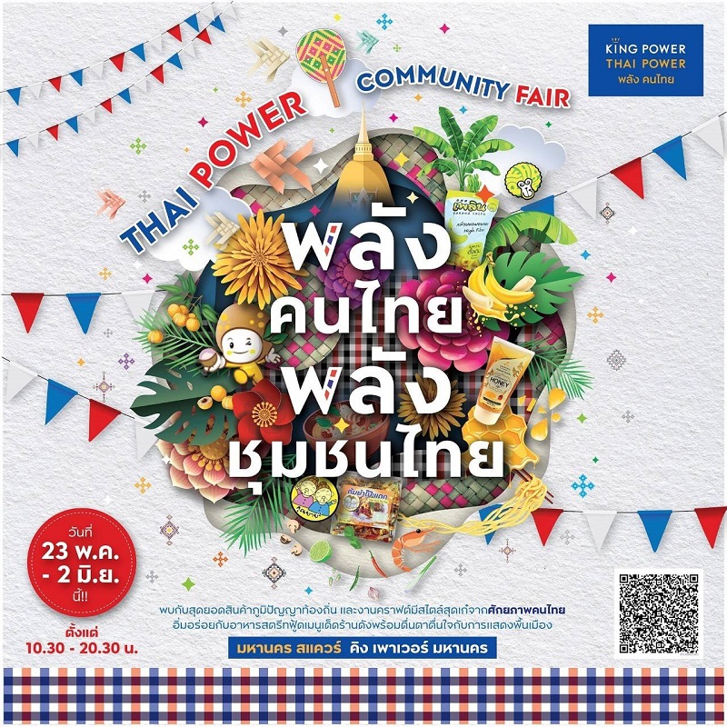 จากความมุ่งมั่นในการสนับสนุนสินค้าไทยให้ก้าวไกลสู่เวทีโลก จึงเป็นจุดกำเนิดของโซนจำหน่ายสินค้าไทยใน คิง เพาเวอร์ ดิวตี้ฟรี ที่เป็นช่องทางจำหน่ายสินค้าจากภูมิปัญญาของคนไทยแก่นักท่องเที่ยวทุกมุมโลกที่เดินทางมาท่องเที่ยวในประเทศไทย ที่ช่วยสร้างอาชีพอย่างยั่งยืน และมอบคุณภาพชีวิตที่ดีแก่ชุมชนต่างๆ ทั่วประเทศไทย ซึ่งสินค้าภูมิปัญญาไทยระดับพรีเมี่ยมต่างๆ เหล่านั้น กำลังถูกจัดส่งมาจำหน่าย ณ ใจกลางเมือง ในรูปแบบงานแฟร์ยิ่งใหญ่ ภายใต้ชื่องาน ‘พลังคนไทย พลังชุมชนไทย’