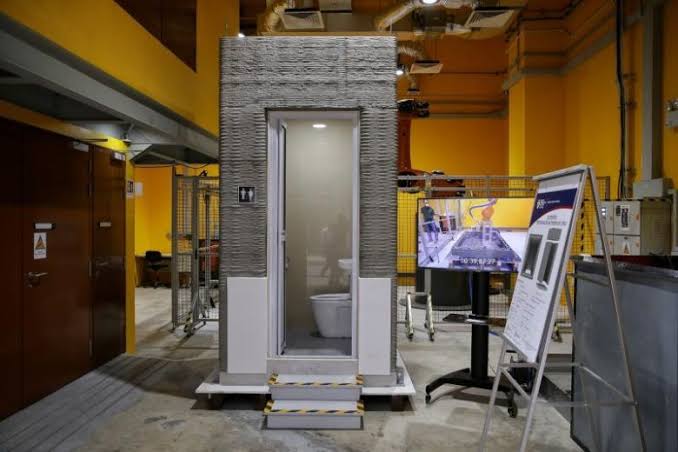 ห้องน้ำที่สร้างจากเครื่องพิมพ์ 3 มิตินี้เป็นผลงานการวิจัยของมหาวิทยาลัยนันยาง เทคโนโลยี ที่ต้องการพัฒนาตัวช่วยอุตสาหกรรมก่อสร้างให้ประหยัดต้นทุนและใช้สอยพื้นที่ได้อย่างมีประสิทธิภาพมากขึ้น โดยเป็นผลสืบเนื่องจากปี 2014 ที่รัฐบาลระบุว่าการสร้างอาคารในสิงคโปร์จะต้องติดตั้งห้องน้ำสำเร็จรูปที่ประกอบแล้วเสร็จจากภายนอกไซต์งาน (Prefabricated Bathroom Units) ที่มาถึงแล้วก็ยกขึ้นติดตั้งบนอาคารได้เลยเท่านั้น