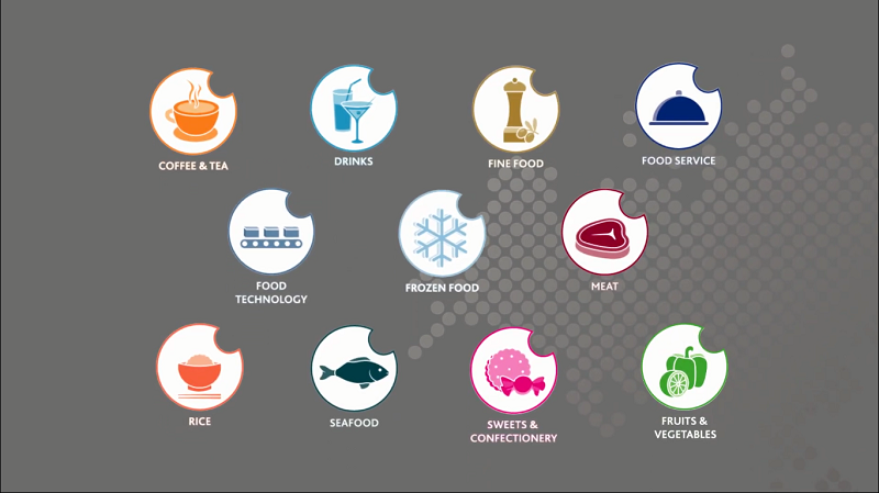 โดยภายในงาน THAIFEX – World of Food Asia 2019 ได้แบ่งสินค้าที่จัดแสดงออกเป็น 11 ประเภท ได้แก่ อาหารสำเร็จรูป นำเสนอทางเลือกที่หลากหลายของอาหารสำเร็จรูป ร้านอาหาร และผลิตภัณฑ์อาหารขั้นพื้นฐาน, เครื่องดื่ม ทั้งที่ไม่มีแอลกอฮอล์และมีแอลกอฮอล์, ขนมและของขบเคี้ยว นำเสนอผลิตภัณฑ์และนวัตกรรมที่หลากหลายตามเทรนด์ล่าสุด, อาหารทะเล นำเสนอโอกาสในการหาแหล่งธุรกิจที่กว้างขวางขึ้นเนื่องจากความต้องการอาหารทะเลทั่วโลกยังคงเพิ่มสูงขึ้น, เนื้อสัตว์ ครอบคลุมเทรนด์ของเนื้อสัตว์ ไส้กรอก และสัตว์ปีก, อาหารแช่แข็ง มุ่งเน้นไปที่กลุ่มอาหารสะดวกซื้อและอาหารพร้อมรับประทาน, ข้าวและธัญพืช แนะนำทางเลือกใหม่ที่มีความหลากหลายเพื่อตอบสนองความต้องการที่เปลี่ยนแปลงของผู้บริโภค, ผักและผลไม้ นำเสนอผลิตภัณฑ์จากธรรมชาติและอาหารออร์แกนิคเพื่อตอบสนองความต้องการอาหารปลอดภัยและความยั่งยืนของโลก, กาแฟและชา แสดงสินค้าครบวงจรตั้งแต่เมล็ดกาแฟจนถึงอุปกรณ์ทำกาแฟและใบชาสู่ถ้วยชา, ธุรกิจบริการด้านอาหาร รวบรวมทุกภาคส่วนของการบริการด้านอาหาร ร้านอาหาร แนวคิดการบริการที่รวดเร็ว และอุตสาหกรรมการจัดเลี้ยง และ เทคโนโลยีด้านอาหาร นำเสนอสินค้าอุปกรณ์แปรรูปอาหารและบรรจุภัณฑ์เพื่อช่วยให้ธุรกิจตอบสนองความต้องการที่เพิ่มขึ้นของผู้บริโภค