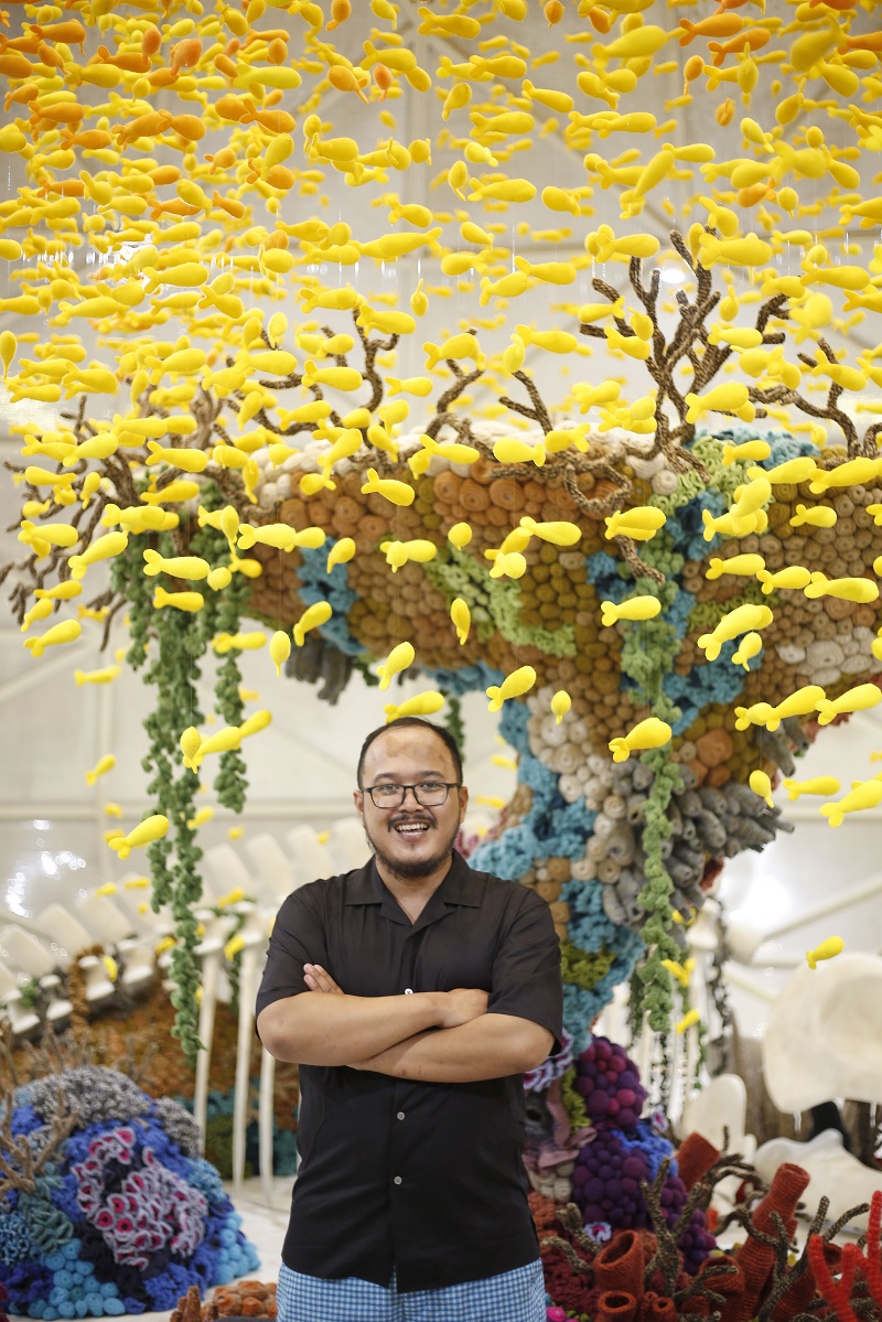 ANIMA MUNDI (อะนีมา มุนดี้) ซึ่งเป็นภาษาละตินที่แปลว่า Soul of the World หรือ “จิตวิญญาณของโลก” เป็นนิทรรศการศิลปะที่นำเสนอโลกใต้ทะเลลึกอันน่ามหัศจรรย์ ผ่านศิลปะการถักนิตติ้ง ซึ่งไม่ได้ใช้ไหมพรมแบบธรรมดาทั่วไป หากแต่ใช้เส้นใยที่ได้จากขยะและวัสดุเหลือใช้ อย่างขยะยาง หรือขยะพลาสติก เศษด้ายและเศษผ้าจากโรงงานนำมาถักทอเป็นสิ่งมีชีวิตในจินตนาการ สิ่งมีชีวิตเหล่านี้เป็นเสมือนตัวตนที่สอง (Alter Ego) ของศิลปิน ที่ได้แรงบันดาลใจจากสิ่งมีชีวิตในโลกใต้ทะเลลึกอันหลากหลาย ที่สวยงามและลึกลับ โดยเฉพาะ Mogus (สัตว์ประหลาด) อย่าง Gurita (หมึกยักษ์ ในภาษาอินโดนีเซีย) ที่เป็นเสมือนหนึ่งลายเซ็นอันเปี่ยมเอกลักษณ์ของศิลปิน