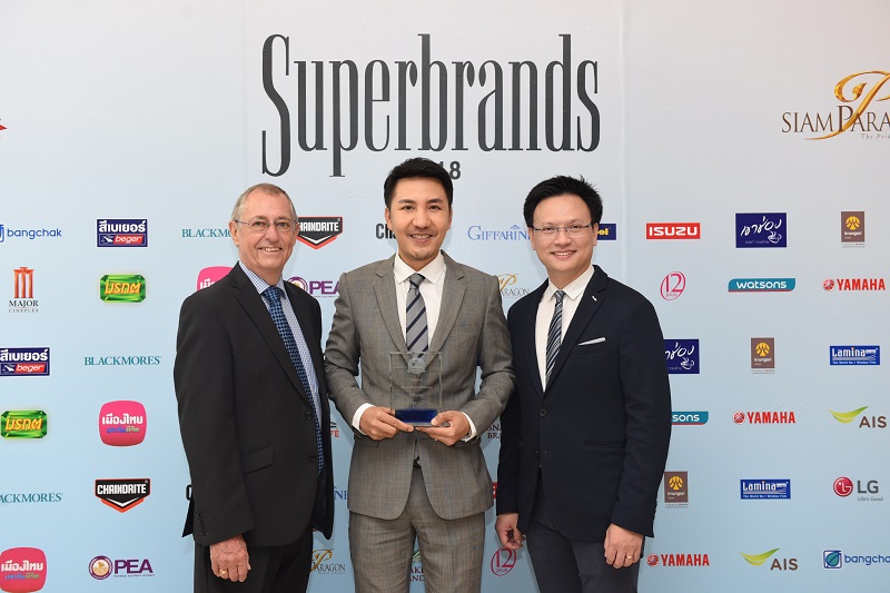 คุณพงศ์พสุ อุณาพรหม (กลาง) ผู้อำนวยการใหญ่สายงานการตลาด บริษัท กิฟฟารีน สกายไลน์ ยูนิตี้ จำกัด รับมอบรางวัลซุปเปอร์แบรนด์ 2018 จาก มร.ไมค์ อิงลิช (ซ้าย) ประธานบริหารซุปเปอร์แบรนด์ และ คุณปรีชา แก่นพรม (ขวา) ผู้อำนวยการซุปเปอร์แบรนด์ ประเทศไทย ให้เป็นสุดยอดแบรนด์ของประเทศไทย ในฐานะเป็นแบรนด์ผลิตภัณฑ์เพื่อสุขภาพและความงามสัญชาติไทยที่ได้มาตรฐานสูงสุดในการวัดและประเมินความสำเร็จด้านการสร้างแบรนด์ระดับโลก ติดต่อกันเป็นปีที่ 9 ณ ศูนย์การค้าสยามพารากอน เมื่อวันอังคารที่ 23 กรกฎาคม 2562