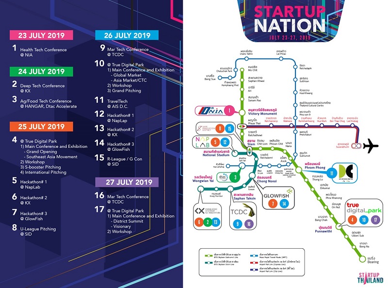 งาน STARTUP THAILAND 2019 รวมพลังสตาร์ทอัพชั้นนำในประเทศไทย เหล่าหัวกะทิสตาร์ทอัพจากทั่วโลก ร่วมด้วยเครือข่ายความร่วมมือจาก 25 ประเทศ มาเปิดมุมมองความคิดใหม่ๆ และค้นหาสุดยอดไอเดียธุรกิจที่จะเติบโตเป็นยูนิคอร์น พบกับปรากฎการณ์ใหม่ที่ไม่เคยมีมาก่อนในประเทศไทย วันที่ 23-27 กรกฎาคม 2562 ที่ True Digital Park และ Bangkok Innovation Corridor อีก 8 แห่งในกรุงเทพมหานคร เมืองที่ดีที่สุดสำหรับสตาร์ทอัพ อันดับ 1 ในเอเชีย อ้างอิง: https://startupthailand.org/st2019/