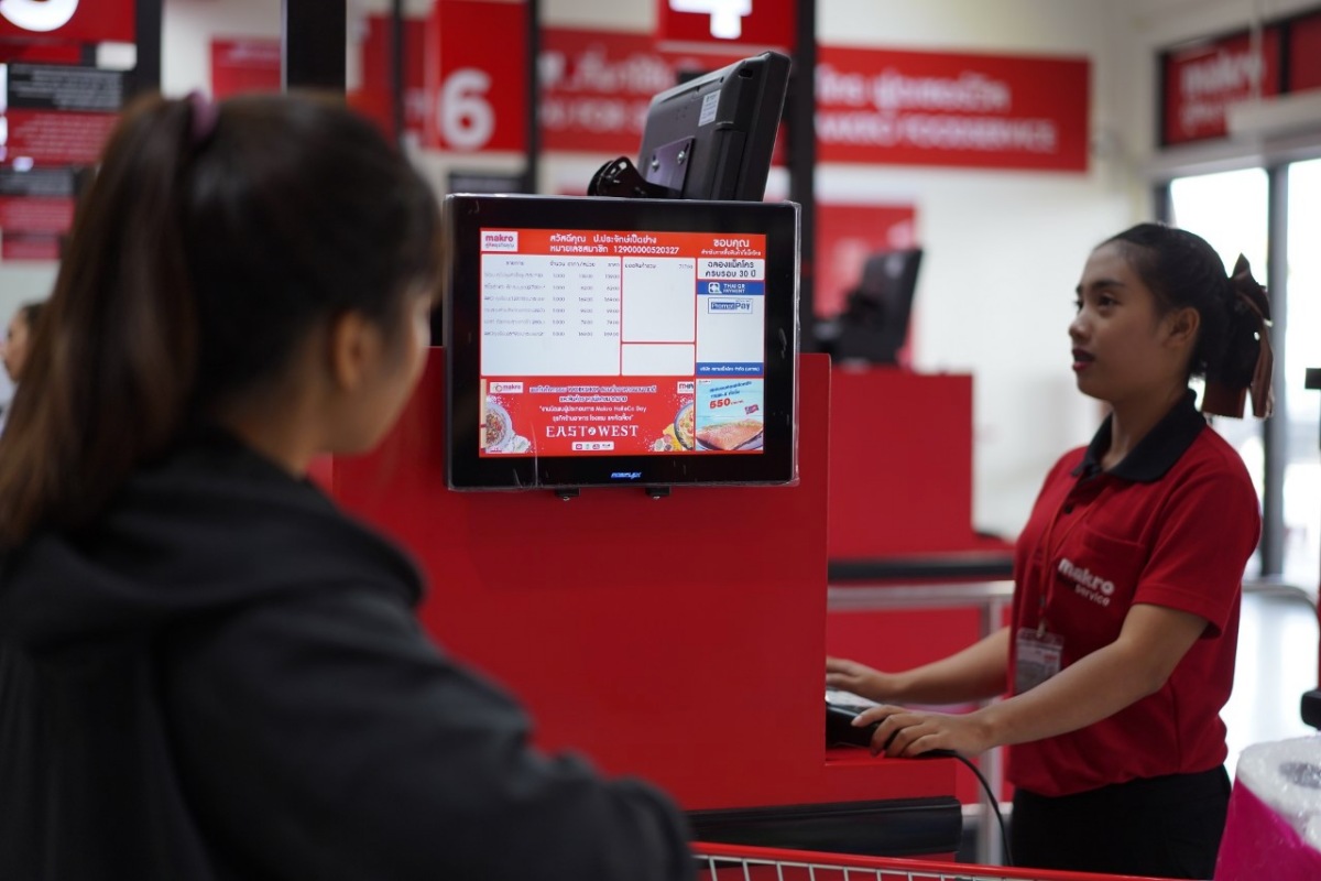 เครื่องคิดเงินสองหน้าจอ : แสดงรายการสินค้าที่ถูกสแกนไปพร้อมๆ กับแคชเชียร์ เพื่อเช็คความถูกต้องไปพร้อมกัน พร้อมีช่องแสดง QR Code สำหรับชำระเงิน ที่สามารถเลือกจ่ายได้ตามที่ต้องการทั้งเงินสด บัตรเครดิต หรือ QR Payment