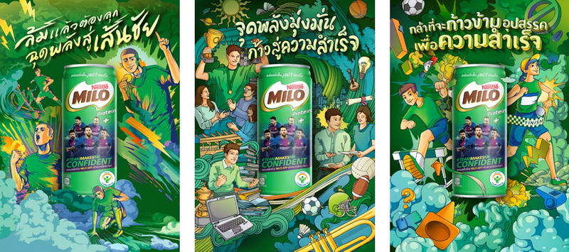 MILO CAN สินค้าภายใต้บริษัท ไมโล (เนสท์เล่ ประเทศไทย) ที่ถูกพัฒนาเป็นแพ็คเก็จจิ้งแบบกระป๋อง จับถือง่าย และมาพร้อมกับการปรับสูตรให้หวานเหมาะสมกับวัยตามหลักทางเลือกสุขภาพ เพื่อเจาะกลุ่มเป้าหมายวัยรุ่นถึงวัยทำงานตอนต้น และเพื่อการสื่อสารทางการตลาดให้กลุ่มเป้าหมายได้รับรู้ ด้วยแคมเปญ #MILOCan #อะไรก็Can ในแคมเปญมีการปล่อย Branded Contents 3 ภาพต่อเนื่อง ที่เด่นด้วยการ Illustrate สไตล์กีฬาที่สวยแปลกตา แต่ก็ยังคงความเป็นตัวตนของไมโลได้อย่างชัดเจน ผ่านสื่อ Social Media อย่าง FB Fan Page, Youtube และ Instagram Story Ads