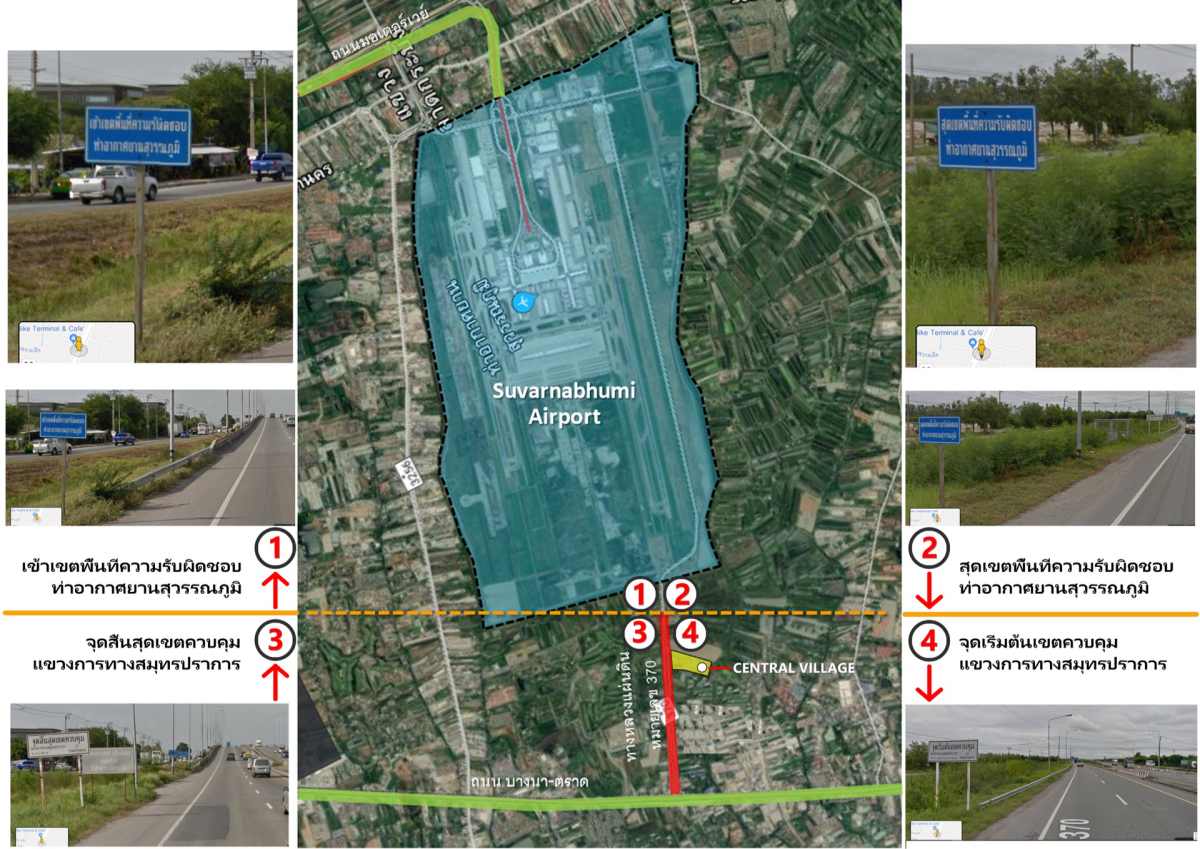 ที่ดินนี้อยู่บนทางหลวงแผ่นดินหมายเลข 370 และมีป้ายเริ่มต้นและสิ้นสุดอย่างชัดเจน โดยทางหลวงแผ่นดิน 370 ซึ่งเคยเป็นที่ราชพัสดุ และมอบให้กรมทางหลวงสร้างและเป็นผู้ดูแล ซึ่งเป็นพื้นที่คนละส่วนกับพื้นที่ดินเวนคืนของสนามบินสุวรรณภูมิที่ ทอท ดูแล อีกทั้ง ทางหลวงแผ่นดินหมายเลข 370 ถือเป็นทางหลวงสาธารณะ ที่ใช้เงินภาษีอากรของประชาชน ไม่ใช่ขององค์กรเอกชนใดที่จะมากล่าวอ้างเป็นเจ้าของได้