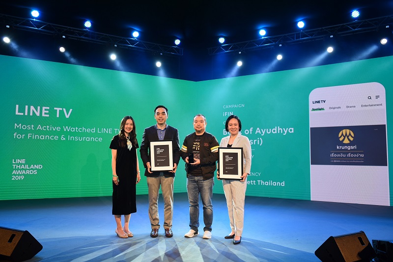 นางสาวมิ่งขวัญ พัฒนวงศ์ ผู้ช่วยกรรมการผู้จัดการใหญ่ ผู้บริหารสายงาน Corporate Affairs ธนาคารกรุงศรีอยุธยา จํากัด (มหาชน) รับ 2 รางวัลจากงาน LINE Thailand Awards 2019 ประกอบด้วย 1) รางวัล Most Used Sponsored Stickers สติกเกอร์แบรนด์ที่ได้รับความนิยมมากที่สุดในกลุ่มอุตสาหกรรมการเงินและประกัน สำหรับสติกเกอร์ชุด “Yeah!! Happy Every Day” ของกรุงศรี และ 2) รางวัล Most Active Watched LINE TV โฆษณาที่ได้รับความนิยมมากที่สุดใน LINE TV จากความสำเร็จของโฆษณา Krungsri iFIN