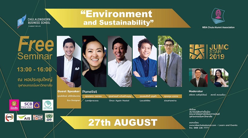 · ช่วงกิจกรรมที่ 1 ในเวลา 13.00-16.00 น. บรรยายพิเศษหัวข้อ “ ชีวิต ธรรมชาติ สิ่งแวดล้อม” โดย คุณท็อป พิพัฒน์ อภิรักษ์ธนากร / ช่วงเสวนาวิชาการ “Environment and Sustainability” โดยผู้รับรางวัล JUMC STAR 2019 Excellence คุณท็อป พิพัฒน์ อภิรักษ์ธนากร Eco Designer คุณกชกร วรอาคม Landprocess, คุณศานนท์ หวังสร้างบุญ Once Again Hostel , คุณสมศักดิ์ บุญคา LocalAlike, คุณอรุษ นวราช สวนสามพราน