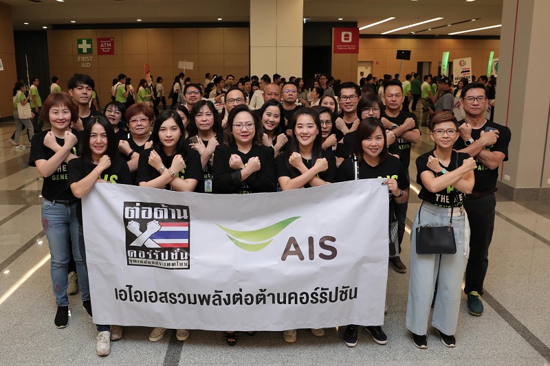 เอไอเอส โดย นางสาวกานติมา เลอเลิศยุติธรรม หัวหน้าคณะผู้บริหารด้านทรัพยากรบุคคล พร้อมด้วยคณะผู้บริหารและพนักงาน ร่วมแสดงพลังต่อต้านการคอร์รัปชัน ตอกย้ำแนวทางในการดำเนินธุรกิจตามหลักธรรมาภิบาล และมีความรับผิดชอบต่อสังคม เนื่องในวันต่อต้านคอร์รัปชัน ประจำปี 2562 จัดโดยองค์กรต่อต้านคอร์รัปชัน (ประเทศไทย) และภาคีเครือข่าย ณ ศูนย์นิทรรศการและการประชุมไบเทค บางนา