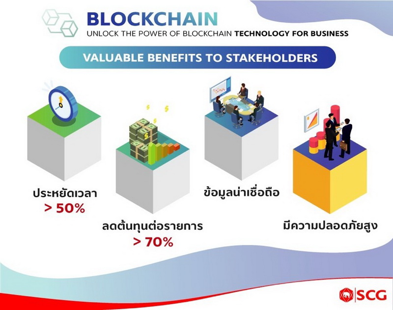 ขณะที่ทางฝัง เอสซีจี เป็นอีกหนึ่งธุรกิจรายใหญ่ที่ได้นำเทคโนโลยี Blockchain เข้ามาช่วยเพิ่มประสิทธิภาพในกระบวนการจัดซื้อจัดจ้าง-วางบิล-ชำระเงิน หรือที่เรียกว่า “B2P” (Blockchain Solution for Procure-to-Pay) ระหว่างเอสซีจีและคู่ค้าธุรกิจ เมื่อเดือนสิงหาคมปี 2561 ที่ผ่านมา เพื่อแก้ปัญหากระบวนการจัดซื้อจัดจ้างของเดิมที่มีขั้นตอนต้องตรวจสอบมากมาย ทำให้สูญเสียเวลาการทำงานในแต่ละวันค่อนข้างมาก