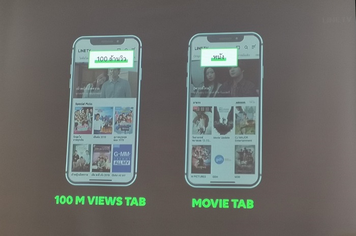 เพื่อเป็นการดึงผู้ชมกลุ่มใหม่เข้าสู่ ไลน์ทีวี มากขึ้น ได้เพิ่มฟีเจอร์ Tab ใหม่ “100 ล้านวิว” ที่ถือเป็น คิลเลอร์ คอนเทนต์ของไลน์ทีวี เพื่อเป็นตัวเลือกให้กลุ่มใหม่ที่ยังไม่รู้ว่าจะดูคอนเทนต์อะไร จะเลือกจากคอนเทนต์ที่รับความนิยมเป็นอันดับแรกก่อน ถือเป็นการสร้าง “100 ล้านวิว คลับ” ให้กับพาร์ทเนอร์ที่สร้างคอนเทนต์ยอดนิยมในไลน์ทีวี อีก Tab ใหม่ คือ Movie เป็นภาพยนตร์ดูฟรีเต็มเรื่อง สำหรับกลุ่มครอบครัวที่จะได้รับชมช่วงวันหยุดยาว
