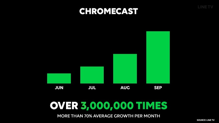 เป้าหมายการขยายฐานผู้ชมกลุ่มแมสและครอบครัว การรับชมของกลุ่มนี้ คือสร้างประสบการณ์ดูทีวีผ่าน “จอใหญ่” ดังนั้นในเดือน มิ.ย.ที่ผ่านมา ได้เปิดตัวฟีเจอร์ไลน์ทีวีบน Chromecast ระยะเวลา 4 เดือนมีผู้ชมดูมากกว่า 3 ล้านครั้ง แต่ละเดือนเฉลี่ยเพิ่มขึ้น 70% คอนเทนท์ที่ได้รับความนิยมผ่าน Chromecast คือ ละคร เอ็นเตอร์เทนเม้นต์ แอนิเมชั่น เป็นประเภทคอนเทนท์ที่ดูง่ายสำหรับครอบครัว
