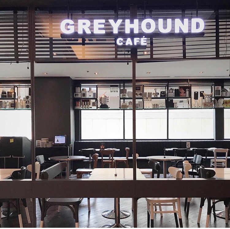 เมื่อแบรนด์ Greyhound กลายเป็นอาหารก็ได้พัฒนาสูตรและการนำเสนอเต็มที่ ความเรียบ เท่ และมีสไตล์ตามแบบฉบับ Greyhound ถูกนำไปจัดวางบนโต๊ะอาหาร ที่ร้าน Greyhound Café จัดเสริฟอาหารแบบ Food with a Twits ใส่ลูกเล่นให้กับอาหารไทย จนกลายเป็นความสนุกและแปลกใหม่