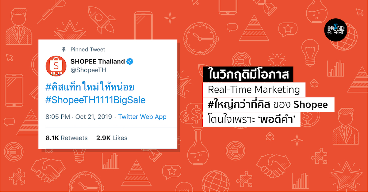บ่อยครั้งที่นักการตลาดพยายามสร้างสรรค์ภาพ(Visual) และข้อความ(Copy) ที่อิงกับกระแส แต่ในบางครั้งก็ต้องดูจังหวะโอกาส และความเหมาะสม สิ่งที่ @ShopeeTH แสดงออกมาในครั้งนี้ มีทั้งความลงตัว เหมาะเจาะ ถ้อยคำที่เหมาะสม กึ่งๆ อีโมชั่น ที่ทำให้ผู้อ่านรู้สึกตลกขบขัน ปนเห็นใจได้อย่างพอดี จนเป็นที่มาของผลตอบรับมากกว่า 8 พันรีทวีต ซึ่งมากกว่าบางแคมเปญที่จับมือกับศิลปินดังเสียอีก ที่สำคัญคือท่ามกลางกระแสสังคมที่แรงเกินเบอร์ขนาดนี้ แบรนด์อื่น ไม่กล้าเล่นแล้ววางเฉยผ่านไป หรือเล่นตอนที่กระแสนิ่งแล้วจนไม่ได้ผลตอบรับตามที่ต้องการ แต่ ShopeeTH สอดแทรกได้พอดี