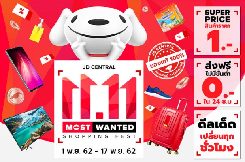 เทศกาล 11.11 “อยากได้ต้องได้! JD CENTRAL MOST WANTED SHOPPING FEST” เริ่มตั้งแต่วันที่ 1-17 พฤศจิกายน พ.ศ.2562 นักช้อปออนไลน์สามารถเติมเต็มความต้องการช้อปปิ้งออนไลน์ พร้อมรับสิทธิพิเศษต่างๆได้ดังนี้