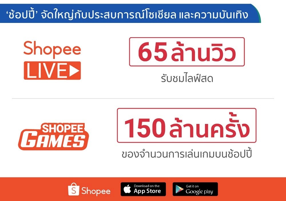 นอกจากนี้ ‘ช้อปปี้’ ยังประสบความสำเร็จในแง่ของการส่งมอบประสบการณ์ความบันเทิงแบบนอนสต๊อปให้กับนักช้อปทุกคน ซึ่งมียอดเข้าชมใน Shopee Live กว่า 65 ล้านวิว โดยมีกองทัพศิลปิน ดาราชั้นนำ อาทิ เชียร์ ฑิฆัมพร, BNK48, Rainie Yang, Dato Seri Siti Nurhaliza, GFriend, และอื่นๆ อีกมากมาย มาร่วมไลฟ์สตรีมกับช้อปปี้ในวันที่ 10 และ 11 พฤศจิกายน เพื่อเฉลิมฉลองโค้งสุดท้ายของแคมเปญ Shopee 11.11 Big Sale ให้กับขาช้อปทุกคน