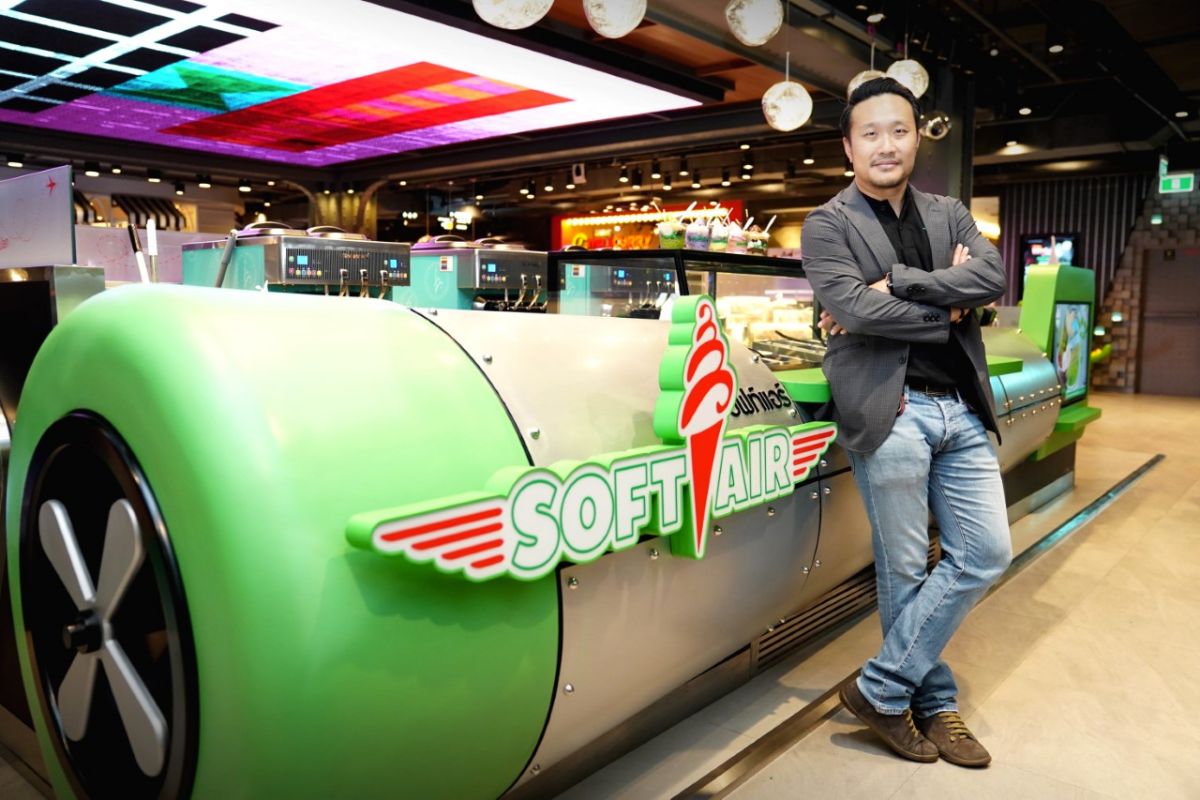 “เนื่องจากซีอาร์จี เรามีโรงงานผลิตไอศกรีมเป็นของตัวเอง มีทีมงานสรรหาวัตถุดิบเกรดพรีเมี่ยมชนิดต่างๆจากทั่วโลกอยู่แล้ว จึงทำให้เกิดไอเดียในการนำของดีของอร่อยมาเสิร์ฟให้กับลูกค้าของเราได้ในราคาสมเหตุสมผล เราจึงใช้ทำการศึกษาค้นคว้า คิดสูตรและปรับอุปกรณ์เครื่องมือในการผลิตซอฟท์ครีม ใช้เวลาประมาณปีกว่าๆ จนสำเร็จออกมาเป็น “ซอฟท์แอร์” สายการบินที่จะนำรสชาติความสุขจากสถานที่ท่องเที่ยวต่างๆในโลก มารวมกันเพื่อเสิร์ฟให้ลูกค้า”