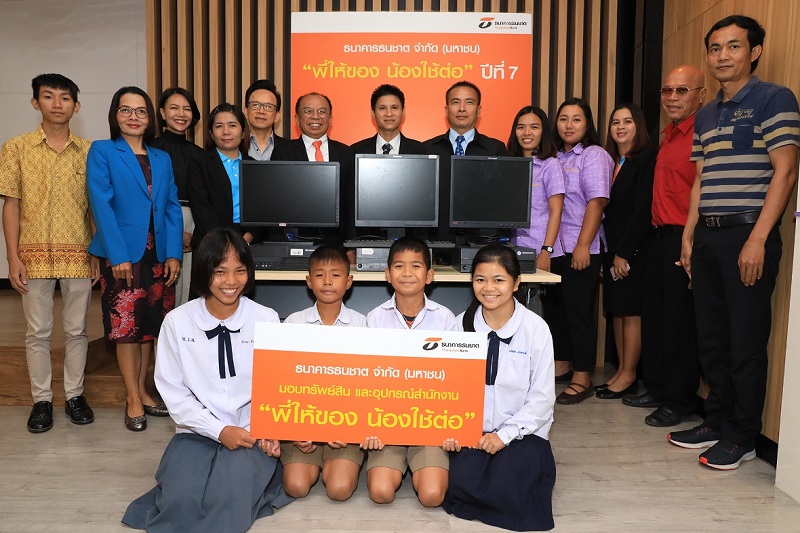 นายเกรียงไกร ภูริวิทย์วัฒนา ผู้ช่วยกรรมการผู้จัดการ สำนักประธานกรรมการบริหารและประธานเจ้าหน้าที่บริหาร ธนาคารธนชาต จำกัด (มหาชน) (ที่ 6 จากซ้าย) นำคณะผู้บริหารมอบความก้าวหน้าแก่สังคม เดินหน้าโครงการ “พี่ให้ของ น้องใช้ต่อ” เป็นปีที่ 7 บริจาคคอมพิวเตอร์และอุปกรณ์สำนักงานใช้แล้ว สภาพดีให้แก่หน่วยงานราชการ และโรงเรียนต่างๆ ทั้งในกรุงเทพฯ และต่างจังหวัด เพื่อให้เกิดประโยชน์เนื่องจากยังมีองค์กร และหน่วยงานภาครัฐต่างๆ ที่ขาดแคลนงบประมาณในการจัดซื้ออุปกรณ์สำนักงานอีกเป็นจำนวนมาก โดยเชื่อว่าผู้ได้รับจะสามารถนำไปใช้ประโยชน์ได้ต่อไป ซึ่งโครงการฯ ได้ดำเนินการมาตั้งแต่ปี 2556 โดยถึงปัจจุบันบริจาคทรัพย์สินประเภทคอมพิวเตอร์, โต๊ะ, ตู้, เก้าอี้ และอื่นๆ ให้องค์กรต่างๆ แล้วกว่า 500 แห่ง จำนวนกว่า 21,000 รายการ