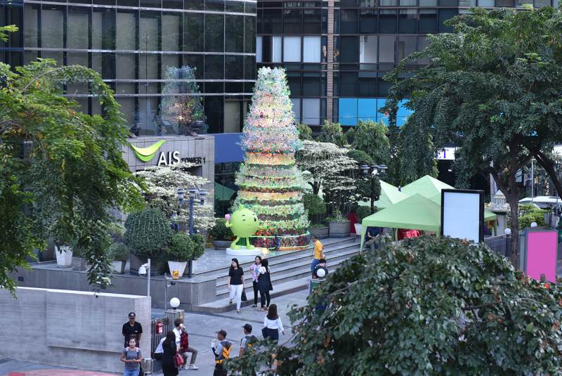 ปัญหาจากขยะพลาสติก และขยะอิเล็กทรอนิกส์ (E-Waste) นับวันยิ่งทวีความรุนแรงมากยิ่งขึ้น แต่หากมีการคัดแยกและนำมาทิ้งอย่างถูกวิธี อาจกลายเป็นการสร้างสรรค์สิ่งใหม่ๆ ให้กับโลกใบนี้ได้อย่างไม่น่าเชื่อ อย่างเช่นเอไอเอสนำขยะอิเล็กทรอนิกส์ และขวดพลาสติกที่คนนำมาทิ้ง มาสร้างสรรค์เป็น “ต้นคริสต์มาสรักษ์โลก” ครั้งแรกในไทย พร้อมประดับด้วยไฟนีออนหลากสีสวยงาม ซึ่งจะตั้งอยู่ที่อาคารเอไอเอส 1 ถนนพหลโยธิน และ AIS D.C. ชั้น 5 ศูนย์การค้า ดิ เอ็มโพเรียม