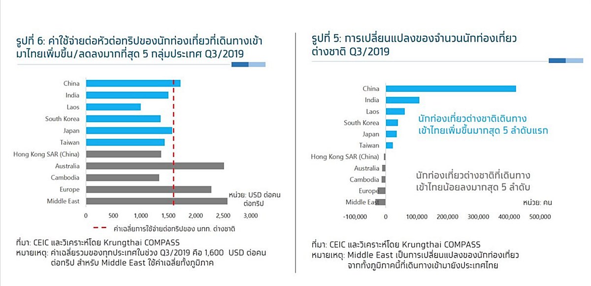 แต่ประเด็นที่ยังต้องให้ความสนใจต่อไปคือ แนวโน้มที่นักท่องเที่ยวจากยุโรปและตะวันออกกลางที่มาไทยลดลงเช่นนี้ จะดำเนินต่อไปอีกนานแค่ไหน และธุรกิจโรงแรมตลอดจนธุรกิจโรงพยาบาลที่มีรายได้จากผู้พัก long stay และผู้เข้ามารักษาตัวในไทยจำนวนไม่น้อย จะได้รับผลกระทบมากน้อยเพียงใดในปี 2020 ที่จะถึงนี้