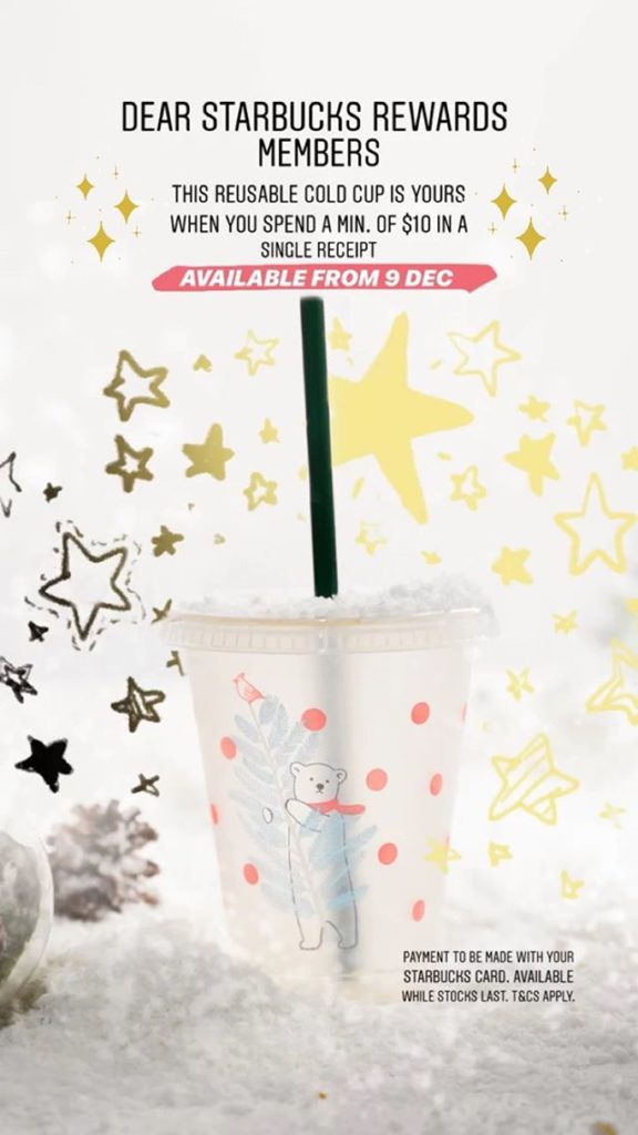 ทุกปีเมื่อเข้าสู่ช่วงเทศกาลคริสต์มาสและปีใหม่ “Starbucks” จะขนสินค้าคอลเลคชั่นใหม่ ที่ออกแบบให้มีสีสันและลวดลายตามบรรยากาศของการเฉลิมฉลองในปีนั้นๆ เพื่อดึงดูด (เงินในกระเป๋า) ให้แฟนคลับได้ซื้อเก็บสะสม แต่ครั้งนี้พิเศษกว่าที่เคยเพราะ “Starbucks Singapore” แจกแก้วรียูส (Reusable Cold Cup) ลายหมีขั้วโลกที่กำลังกอดต้นคริสมาสต์สุดน่ารัก หลังจากที่เปิดตัวสินค้าคอลเลคชั่นดังกล่าวไปแล้วก่อนหน้านี้