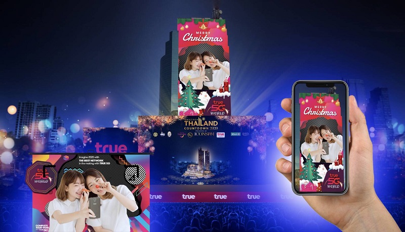 ทรู ประกาศความพร้อมเป็นเครือข่าย 5G ที่ดีที่สุด จากผู้นำดิจิทัลไลฟ์สไตล์ครบวงจร เพื่อคนไทยทุกคน ชวนสัมผัสประสบการณ์ “The 1st Digital Countdown with TRUE 5G” โดยสร้างสรรค์ TRUE 5G Sky Shot จออินเตอร์แอ็กทีฟ ครั้งแรกในเมืองไทยที่ให้คุณได้ร่วม “Greeting the World” ด้วยสุดยอด Interactive Mapping Screen ใหญ่ที่สุดกว่า 4,000 ตารางเมตร ที่ใช้เทคนิคการยิงภาพความคมชัดสูงไปยังอาคารฝั่งตรงข้าม ให้เกิดแสงสียิ่งใหญ่ โดดเด่นตระการตาในคุ้งน้ำเจ้าพระยาหน้าไอคอนสยาม โดยทรู พร้อมนำความเป็น World Class Digital Lifestyle Brand ร่วมสร้างสีสันแบบเอ็กซ์คลูซีฟ โดยจัดบูธกิจกรรมที่เปิดโอกาสให้ผู้ร่วมงานได้ถ่ายภาพ แล้วโพสต์แบ่งปันประสบการณ์และความสนุกกับผู้คนทั่วไปขึ้นไปบนจอ TRUE 5G Sky Shot แบบเรียลไทม์ ตั้งแต่ 24 – 31 ธันวาคมนี้ และพิเศษ 31 ธันวาคม ร่วมต้อนรับปีใหม่แห่งยุคดิจิทัลไปด้วยกันอย่างสุดประทับใจมิรู้ลืม โดยจะขึ้นตัวเลขให้ทุกคนร่วมนับถอยหลังบน TRUE 5G Sky Shot อีกหนึ่งไฮไลท์ภายในงานก่อนการแสดงสุดยอดพลุที่ยาวที่สุดในโลก บนโค้งน้ำเจ้าพระยาจะเริ่มขึ้น!