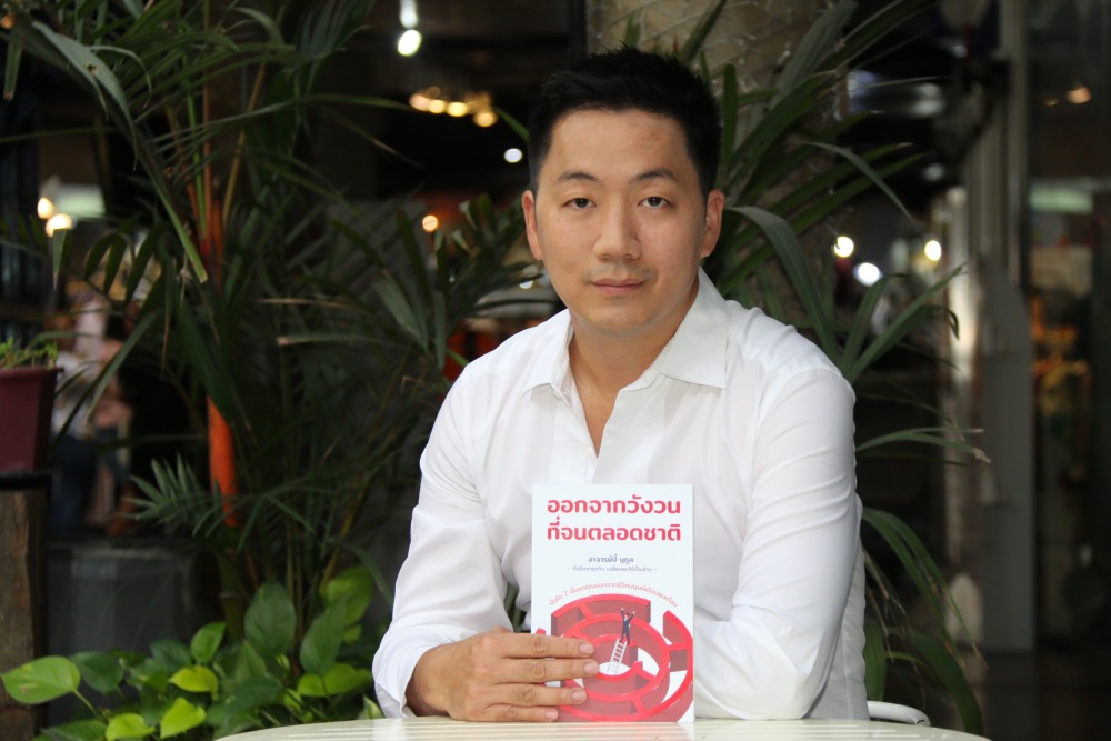 “หลังจากที่ผมรู้ว่าผมสามารถออกจากวังวนนี้ได้ และมีความรู้สึกอยากช่วยเหลือคนที่เจอปัญหาเหมือนที่ผมเจอมา ผมจึงเริ่มเปิดคอร์สให้คำปรึกษา และเมื่อเริ่มมีหลายคนในคอร์ส สามารถที่จะออกจากวังวนได้ เริ่มมีคนที่ชีวิตดีขึ้น ผมก็ได้เห็นว่าหลายคนเคยเจอปัญหาเดียวกับผม เคยเดินตามเส้นทางหนังสือ 100% แบบผม และไม่ได้สร้างเส้นทางของตัวเองขึ้นมา ความคิดนี้มันผลักดันให้ผม อยากลองถ่ายทอดสิ่งที่ผมเจอ ออกมาเป็นตัวอักษรดูบ้าง เพื่อให้สามารถช่วยคนได้ในวงกว้างมากขึ้น จึงนำมาสู่การเขียนหนังสือเล่มแรกในชีวิตอย่าง ‘ออกจากวังวนที่จนตลอดชาติ’ ซึ่งผมมั่นใจว่าหนังสือเล่มนี้ ให้ได้มากกว่าคำว่า How to และสามารถช่วยให้คนๆ หนึ่ง บอกถึงเป้าหมาย ความเชื่อ วิธีคิด หรือเส้นทาง ที่เป็นของตัวเองได้ ผ่านทางเรื่องเล่า หลักคิด กระบวนการ แม้กระทั่งแบบฝึกคิดเพื่อสร้างแผนการ เพื่อทำให้ผู้อ่านได้ออกจากวังวนเดิมๆ และลบความรู้สึก ‘จน’ ออกได้อย่างสมบูรณ์” อาจารย์บี๊ เล่าถึงที่มาของการเขียนหนังสือเล่มนี้