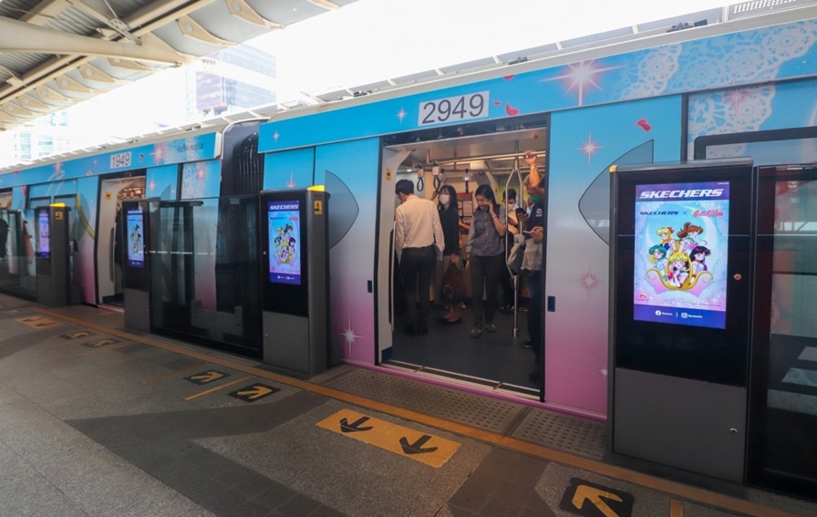 SKECHERS แบรนด์รองเท้ากีฬาชื่อดังชวน Flashback ไปกับ 5 สาวเซเลอร์มูนด้วยคอลเลคชั่นใหม่ล่าสุด SKECHERS X SAILOR MOON พร้อมสร้างปรากฏการณ์มนต์แห่งจันทรา Wrap สื่อโฆษณา VGI Train Body แจกความสดใสด้วยลวดลายอัศวินเซเลอร์สาวสวย ดึงดูดสายตาผู้ใช้บริการบีทีเอสนับแสนคู่ วิ่งผ่าใจกลางเมืองร่ายมนต์สะกดไปทั่วกรุง