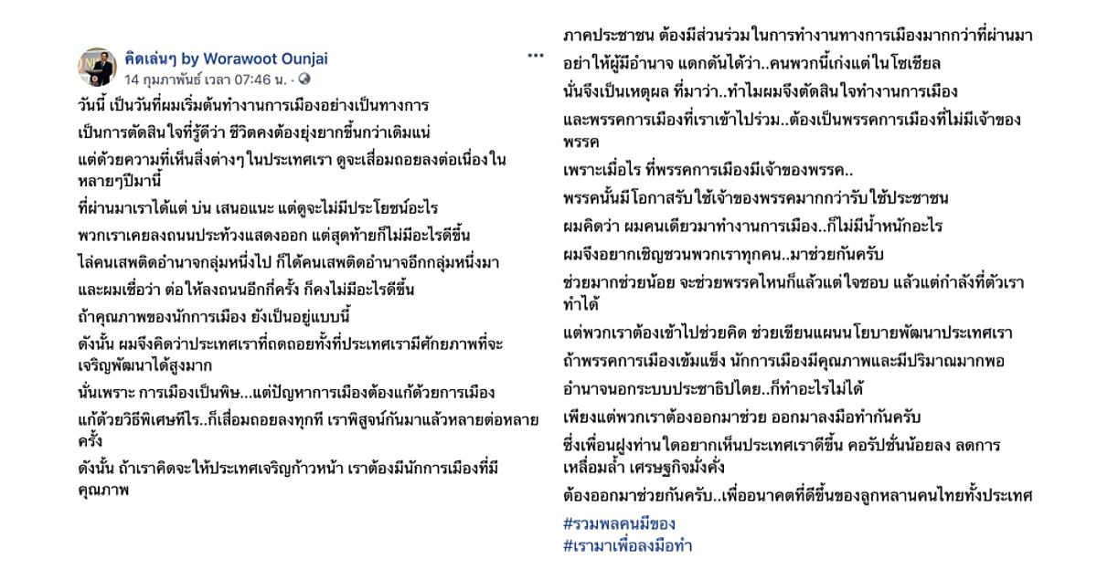 หลังชัดเจนแล้วว่า คุณหมู – วรวุฒิ อุ่นใจ ประธานเจ้าหน้าที่บริหาร บริษัท ซีโอแอล จำกัด (มหาชน) ในเครือเซ็นทรัลกรุ้ป และยังดำรงตำแหน่งประธานสมาคมผู้ค้าปลีกไทย จะเริ่มต้นเส้นทางการเมืองอย่างจริงจัง ด้วยการประกาศตัวเป็นหนึ่งในแนวร่วมสำคัญเพื่อขับเคลื่อนพรรคการเมืองน้องใหม่อย่าง “พรรคกล้า”