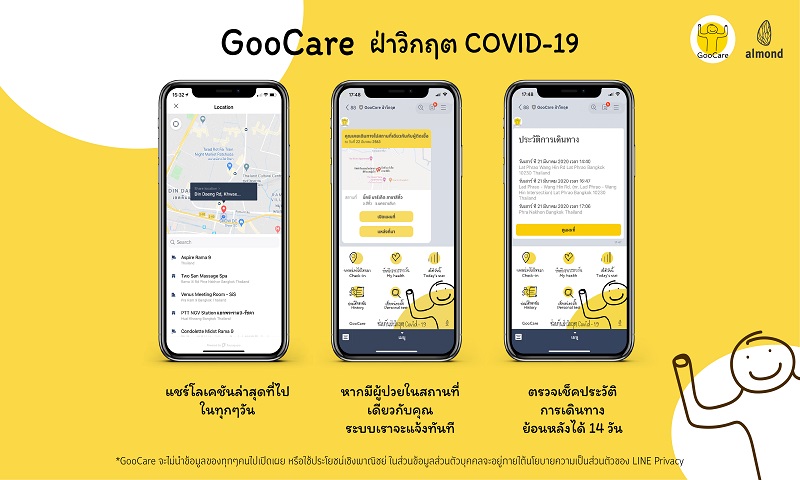 GooCare เป็น Line OA น้องใหม่ที่ถูกร่วมกันพัฒนาขึ้น แบบไม่แสวงหาผลกำไร โดยทีมงานของ อัลมอนด์ ดิจิทัล กรุ๊ป Venture Builder & Innovation Hubที่มีวิสัยทัศน์ในมุ่งสร้างนวัตกรรมเพื่อแก้ปัญหา พัฒนา และสร้างสังคมที่น่าอยู่ยิ่งขึ้น โดย OA ดังกล่าวถูกเปิดให้สามารถใช้งานครั้งแรกเมื่อวันที่ 21 มีนาคม 2563 และได้รับกระแสตอบรับอย่างล้นหลาม ด้วยผู้ใช้งานกว่า 9,000 คน ภายในระยะเวลาเพียง 3 วันเท่านั้น