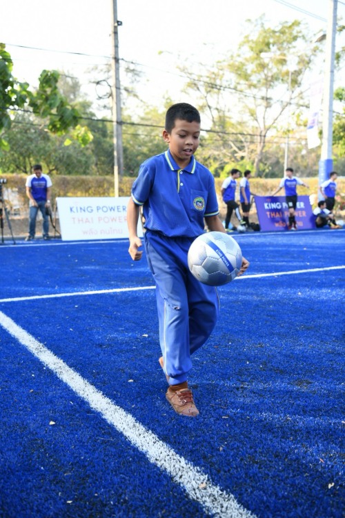 ด้าน ด.ช. เมธัส สุขประเสริฐ นักเรียนชั้นประถมศึกษาปีที่ 6 จากโรงเรียนเทศบาลวัดโขดทิมทาราม จ.ระยอง เล่าว่า ไม่เคยเตะฟุตบอลบนสนามหญ้าเทียมมาก่อน เคยเห็นแต่ในโทรทัศน์ พอมาเห็นของจริงสนามสีน้ำเงินสวยมาก ขอบคุณทางคิง เพาเวอร์ ที่ช่วยให้ผมและเพื่อนๆ มีโอกาสได้สัมผัสสนามฟุตบอลหญ้าเทียมของจริง หลังจากนี้ จะนัดกับเพื่อนๆ ทุกวันพฤหัสบดี ถึงวันอาทิตย์เพื่อมาซ้อมบอลที่สนามหญ้าเทียมแห่งนี้ เพราะอยากเก่งเหมือนพี่สารัชอยู่เย็น