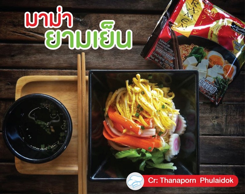 3) มาม่ายามเย็น เมนูนี้เจ้าของไอเดียใช้ผักที่ปลูกเองมาเป็นวัตถุดิบ ไม่ว่าจะเป็นต้นหอม หรือกวางตุ้ง แล้วเพิ่มปูอัด และไข่เจียวหั่นฝอยเข้าไป โรยหน้าด้วยงา แค่นี้ก็ได้มื้อเย็นอร่อย ๆ ให้ทานอิ่มท้องแล้ว