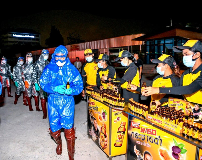 บริษัท โอสถสภา จำกัด (มหาชน) ส่งทัพเอ็ม-150 พร้อมผลิตภัณฑ์เครื่องดื่มลงพื้นที่ลุยภารกิจต่อสู้โควิด-19 ร่วมกับเจ้าหน้าที่จากหน่วยงานต่างๆ ที่ปฏิบัติงานอย่างเข้มแข็งทั้งกลางวันและกลางคืน