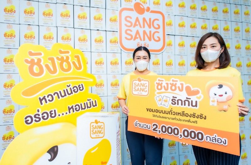 แบรนด์น้องใหม่ “ซังซัง” นำโดย นางสาวมัลลิกา จิรพัฒนกุล ผู้จัดการใหญ่ฝ่ายขาย พร้อมด้วย นางสาวพรรวนา มหาทรัพย์ ผู้จัดการฝ่ายโฆษณาและการตลาดสัมพันธ์ บริษัท แลคตาซอย จำกัด จัดแคมเปญ “ซังซัง…รักกัน” ร่วมต้าน COVID-19