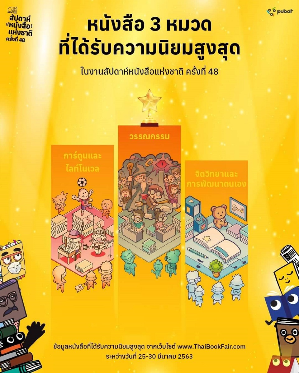 สำหรับประเภทหนังสือที่ได้รับความสนใจจากนักอ่านมาเป็นอันดับหนึ่ง ได้แก่ หนังสือวรรณกรรม ได้รับความสนใจจากผู้อ่านหลากหลายช่วงวัย ตั้งแต่วัยเรียนไปจนถึงวัยทำงาน สถานการณ์ช่วงนี้อาจส่งผลให้ผู้อ่านหันมาอ่านวรรณกรรมเพิ่มขึ้น เพื่อช่วยให้จิตใจผ่อนคลายจากความกังวล