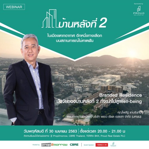 สนใจติดตามรับชมและรับฟังได้ในวันพฤหัสบดี 30 เมษายน 2563 เวลา 20.00 – 21.00 น. ออนแอร์พร้อมกันที่ Facebook: Prop2Morrow, CBRE Thailand, Terra BKK และ Proud Real Estate PLC